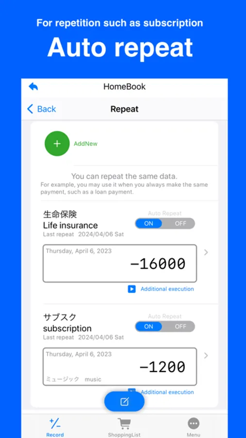 ・You can add the same data multiple times, or you can automatically add data every month or every year.