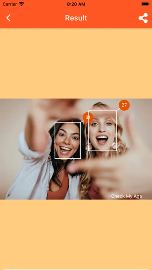 It is easy to evaluate face photo and estimate age using Check My Age. Take a face picture and send it to the face age estimation cloud service. It will send you the results after face detection and age prediction from the face photo. It is so easy with the Check My Age application. You can quickly take selfie of your face or with your loved one faces and send to estimate age. Check My Age can also estimate age of children and elderly people.