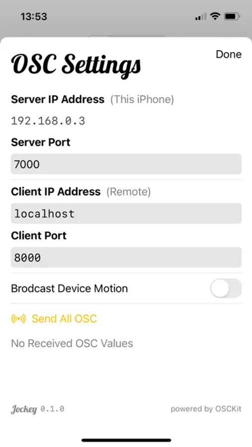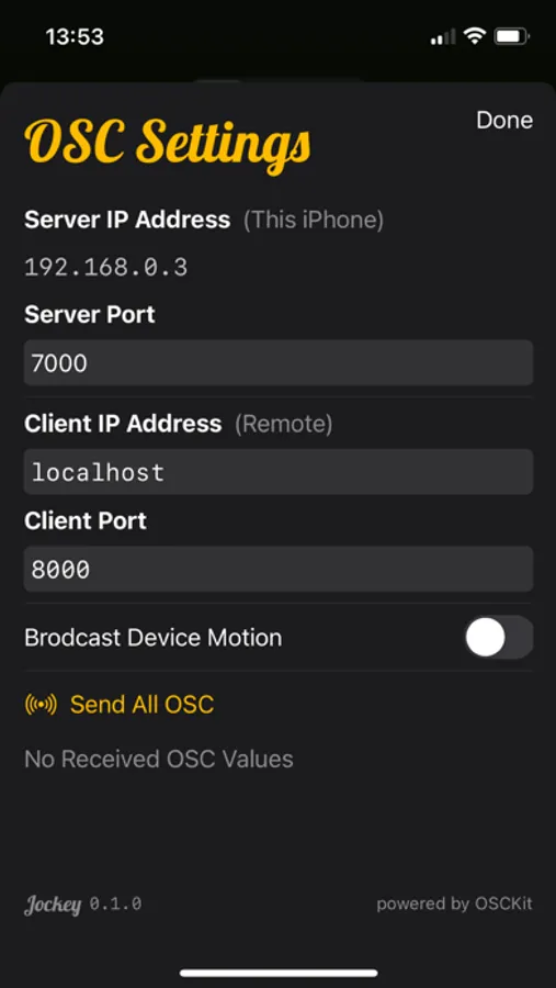 Broadcast device motion like gyroscope, accelerometer and magnetometer.