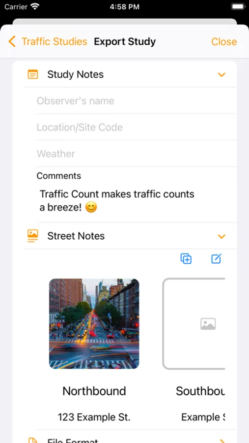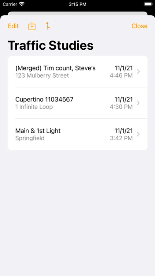 • Import a Traffic Count (.tc) file via Email, Files, Airdrop, etc.