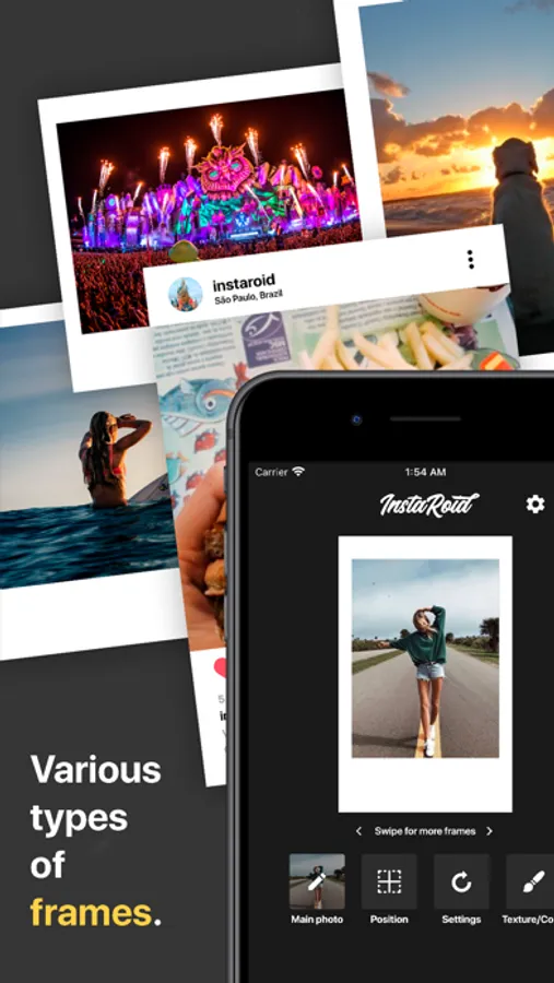 InstaRoid has a wide variety of frames that allow you to create amazing photos in the style "Photograph Instantaneous". In addition to having several customization possibilities.