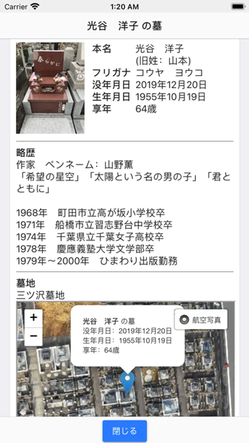 【墓までの地図(位置情報と墓の写真)をスマホに表示】
