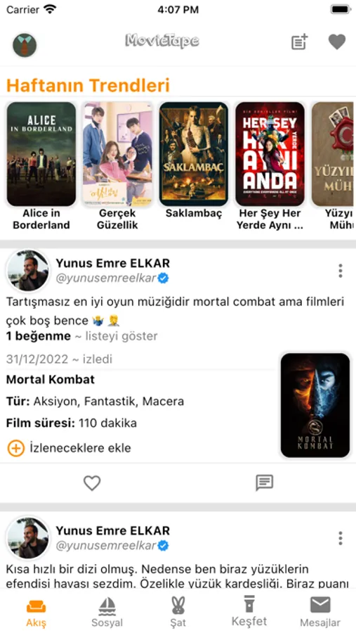 > Arkadaşlarınızın sayfasında beğendiği yapımları görün ve onlarla direk mesajla iletişim kurun.