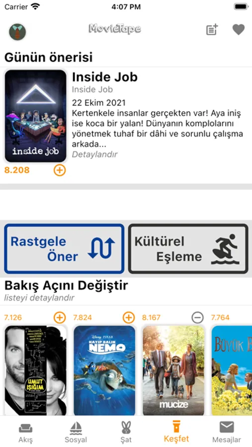 MovieTape ile günlük film önerileri ve film listeleri inceler, beğendiğiniz filmlere göre arkadaşlarınızla uyumluluğunuzu ölçer, sizinle aynı film zevkini taşıyan insanlarla tanışabilirsiniz.