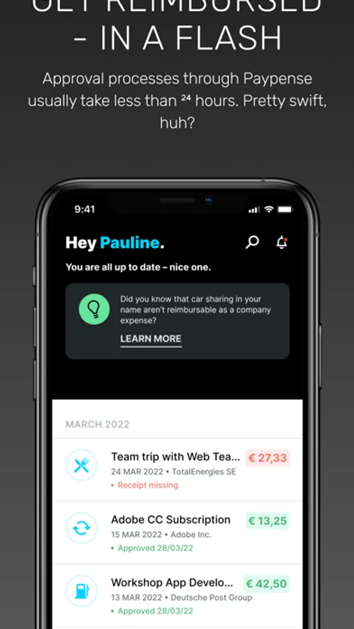 Employees receive a debit card and an app that can be used to apply for funds in real-time. This results in budgets that can be defined in terms of amount, occasion and duration.