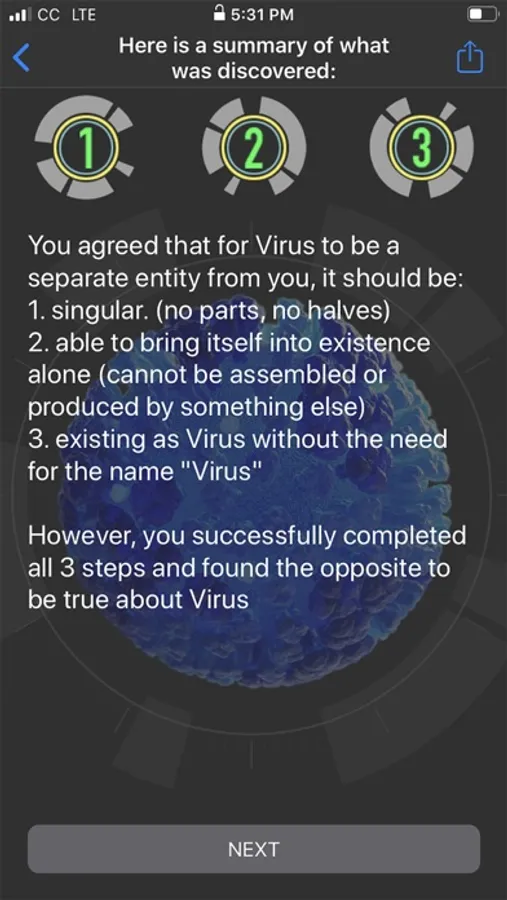 Virus: Enemy or Opportunity (VEO) is an app that brings a simple scientific understanding to how human senses distort our experience of Viruses. This new understanding can be an opportunity to obtain total freedom from all diseases and other sufferings.