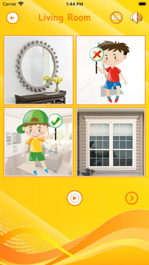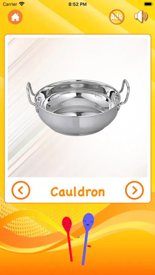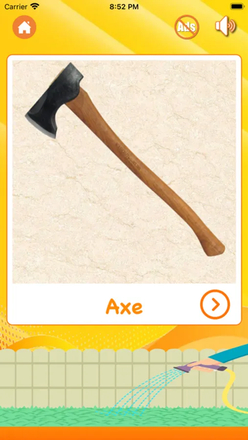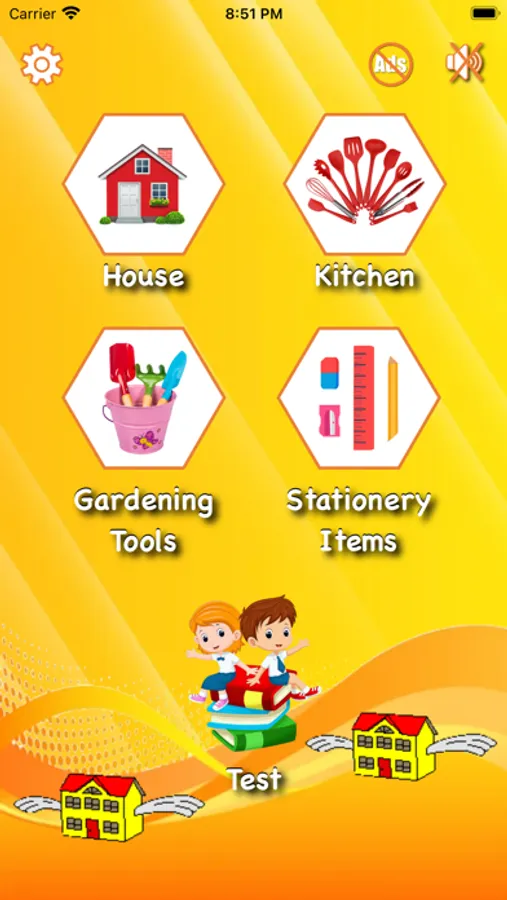 This app is for learning house objects featuring Kitchen objects, Gardening tools, Stationery objects.
