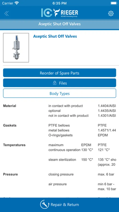 The IC Rieger App was developed to support you in your daily business to get your valves organized easily. Gebr. Rieger complies especially with the industries plant engineering, food and beverage, cosmetics, biotechnology, chemical and pharmaceutical.