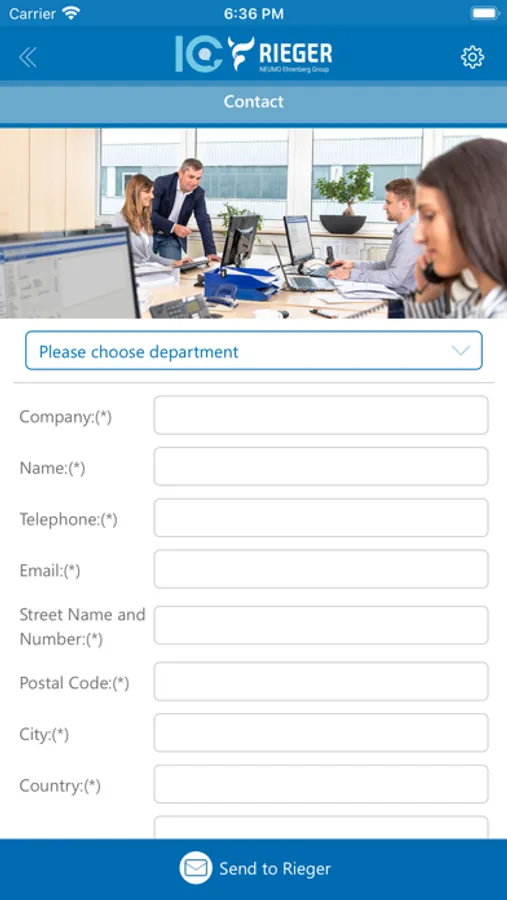 Your connection to Rieger 24/7, 365 days a year without waiting line: Get in touch with your relevant contact person and send us your service request with only a few clicks. Our Service Team will receive your inquiries prioritized in order to respond to them as soon as possible.