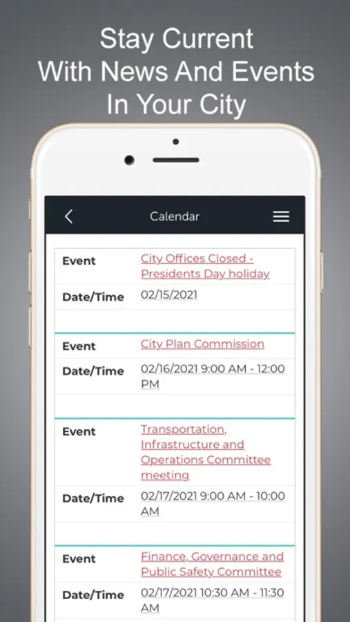 Elected Officials and Hear From Us features allow you to have all the important contact and destination information in your city. Learn about your city’s resources, public safety and elected officials.
