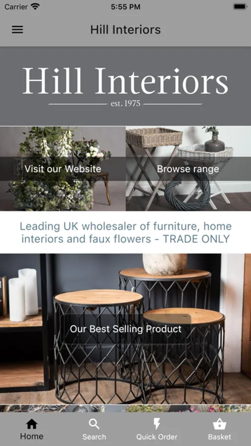 The Hill Interiors app has been designed to create a great user experience for our wholesale customers. When visiting the our showroom in Burneston, North Yorkshire or our Trade Show stands (which have previously included the Autumn/Spring Fairs/Harrogate Christmas & Gift/Harrogate Home & Gift, GLEE, The Furniture Show and Top Drawer to name a few), you can simply log in, sync the product database with our servers and begin your journey. Just point the app's built-in barcode scanner at the product barcode and you'll get a wealth of information including the latest pricing and inventory figures. Choose the products you wish to order and when complete save your basket and sync it. No internet connection? Then simply re-sync once you have a connection. We'll send you an order confirmation via email as soon as we receive it and will give you a phone call to discuss payment, delivery as soon as possible.