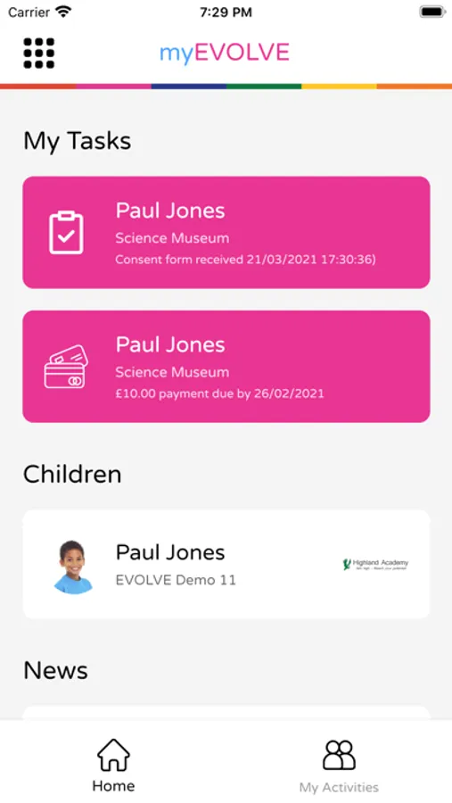 - Push notifications to alert you of important tasks that need your attention e.g. important school news, consent forms requiring completion, payments due, etc.