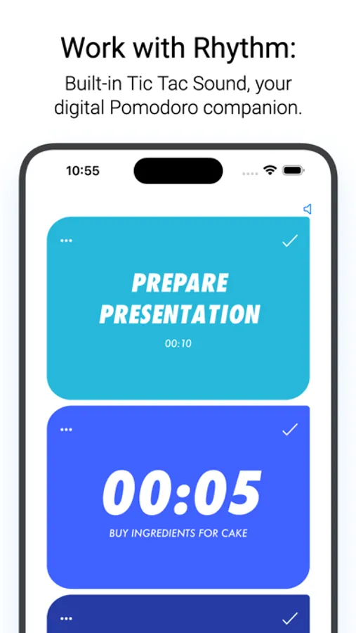 • Pleasant Tic-Tac sound to keep you engaged in the task at hand.