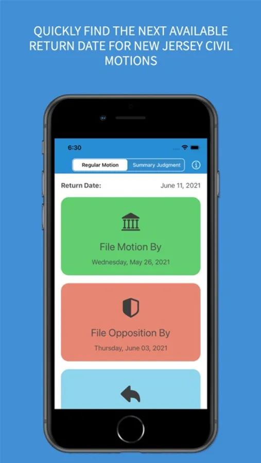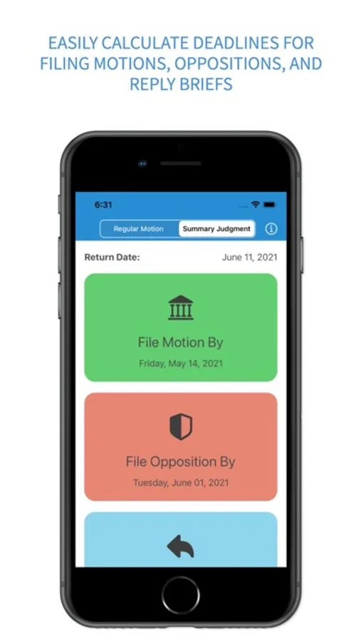 For each return date, the app will provide deadlines for filing motion papers, opposition briefs, and reply briefs.