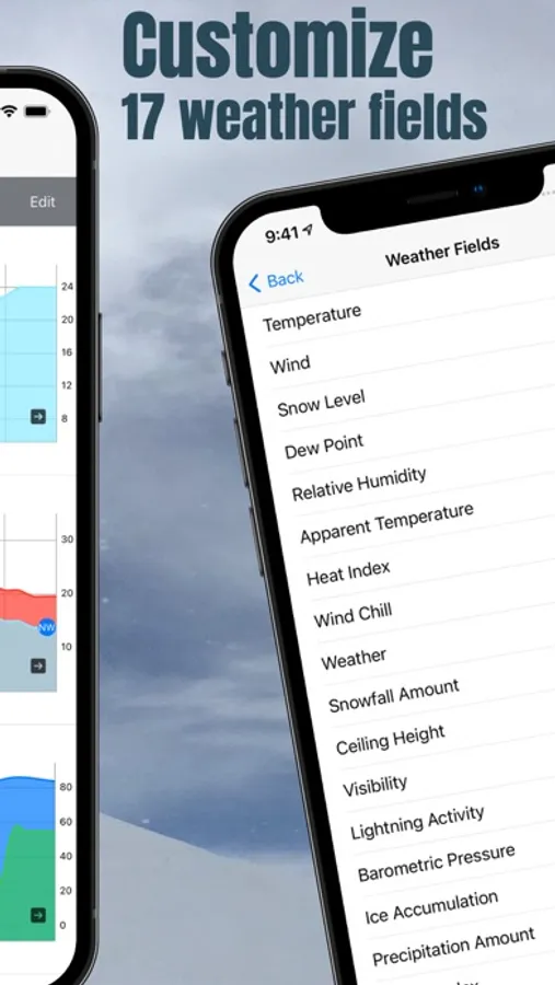 Customize hourly forecasts with up to 17 NOAA weather fields including: