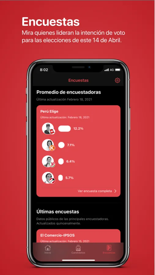 * Resultados de las encuestas presidenciales más representativas.
