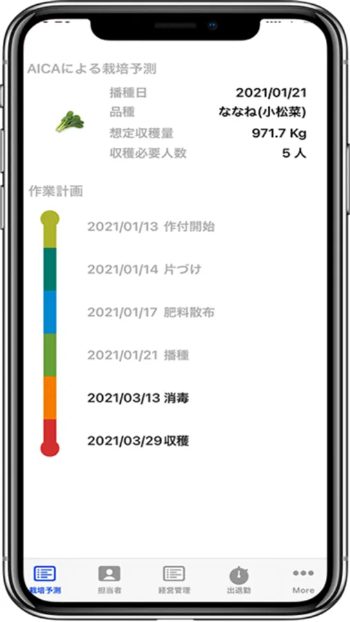 作業記録を元に、圃場に適した品種、作付管理、生育管理、収穫の