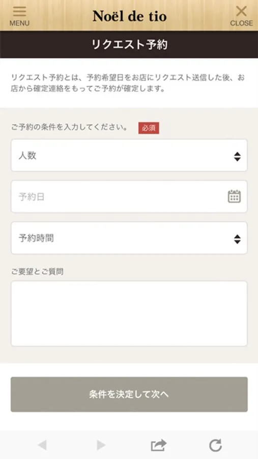 希望のメニュー・日時を指定して送信するだけで予約を依頼できます。