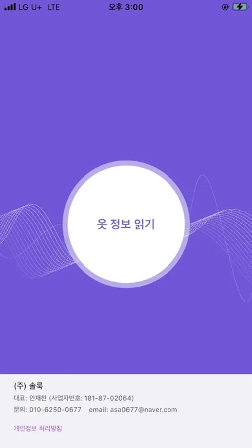 어플리케이션을 작동시키고 솔룩이 제공한 NFC에 접촉을 하게되면 의류정보가 텍스트형태로 출력이 되고, 보이스오버기능을 활용하여 음성으로 출력되게 됩니다.