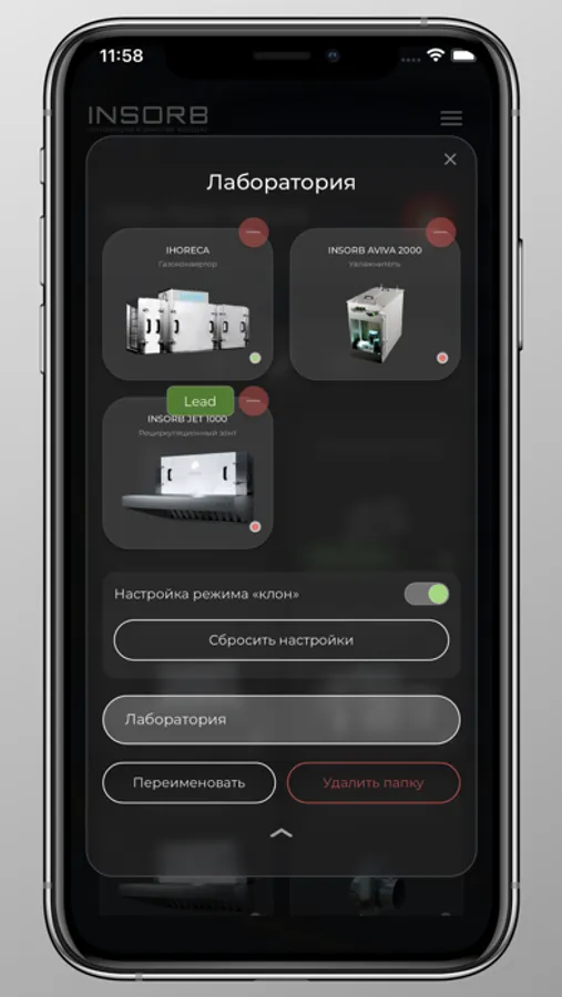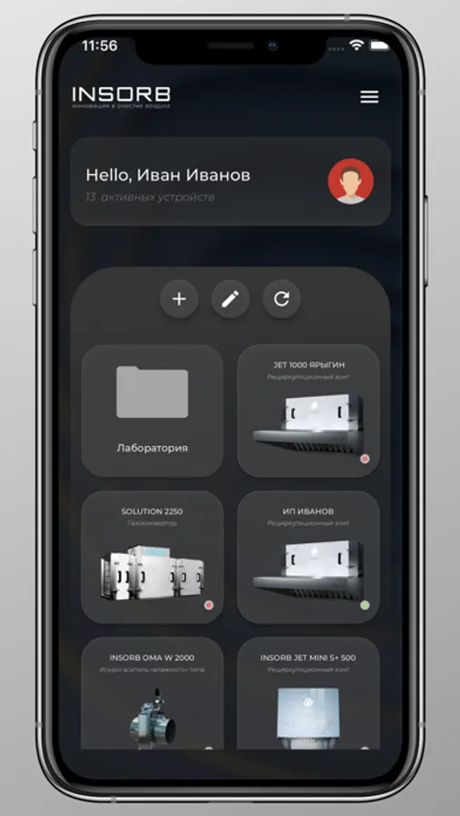 Примечание: Устройство добавляется в ваш аккаунт INSORB CLOUD через QR-код (найти его можно на наклейке устройства, либо в его паспорте)