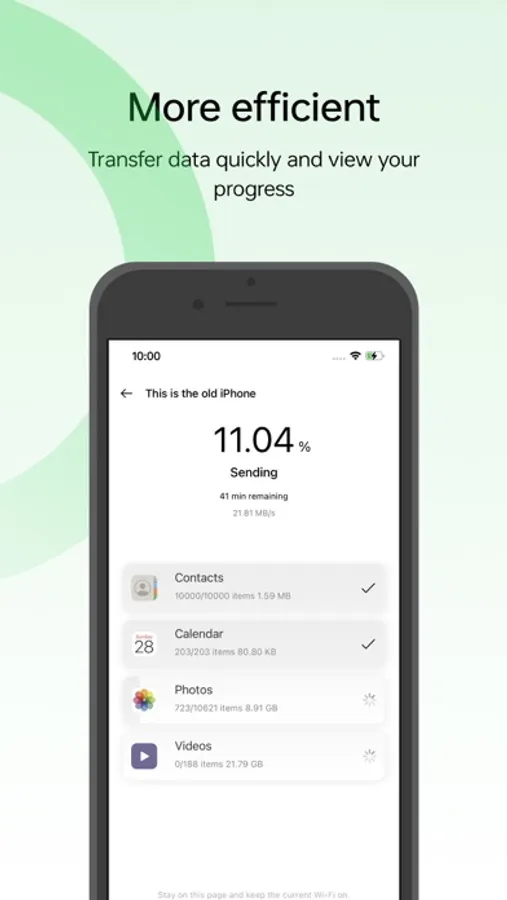 this app came installed with my oneplus phone so i used it and it quickly transferrdd my contacts, photos, videos from my old iphone to that phone it uses like a hotspot on the host phone to transfer data which is weird but its very fast it didnt take long for me to transfer like 10 gb of photos and videos from this phone to that one