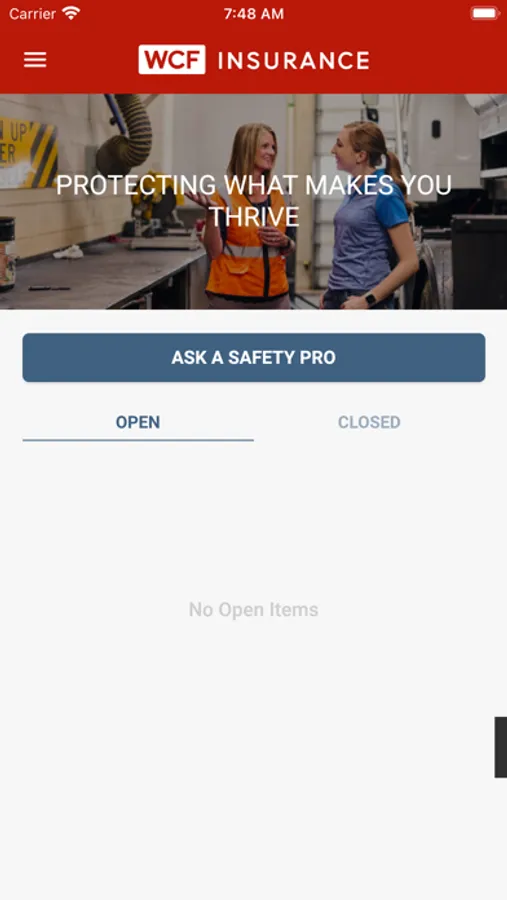 The WCF Safety App is a new tool designed for WCF Insurance clients so clients can "Ask a Safety Pro." The app allows clients to ask one of WCF's world class Safety Consultants questions (with pictures!) related to worker safety. WCF is a leader in helping clients work safely and reduce injuries, incidents and claims. The Safety App is the latest in WCF's long history of innovation in helping clients be as safe as possible.