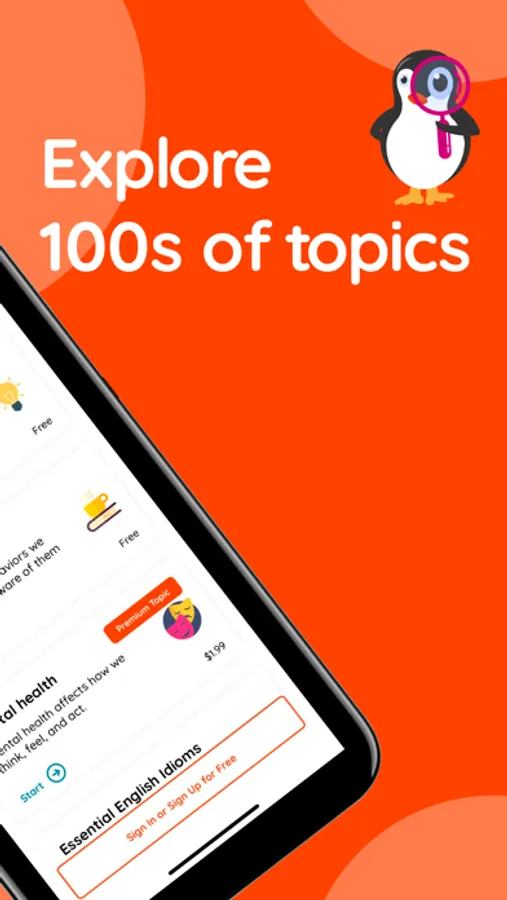 Pingoo is a skill-based language learning app that fills the gap in your daily schedule with exciting topics. By simply reading a sentence and swiping right or left, you can test your knowledge, learn fun facts and deepen your understanding of each topic.