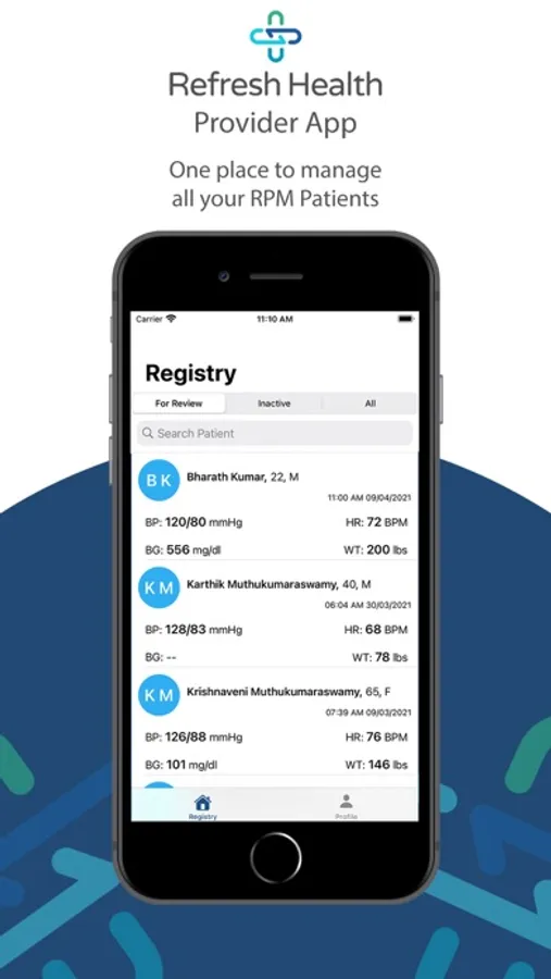 Refresh Health provider app is used by physicians to manage the patient population enrolled in the Refresh connected care program.