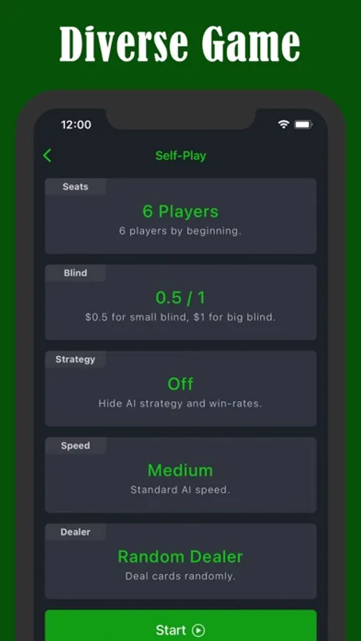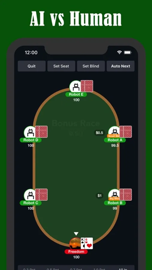 The app is implemented with our powerful and fast AI engine, and a user-friendly UI environment, with multiple configurations for you to customize your own poker game. It's handy for both training and leisure purposes.