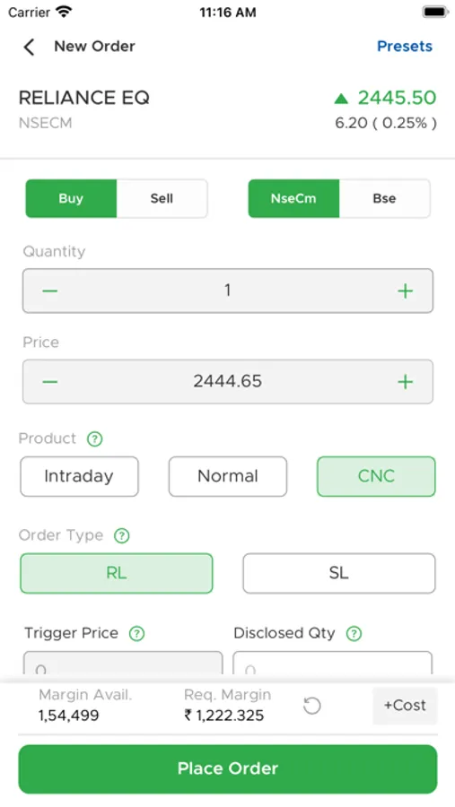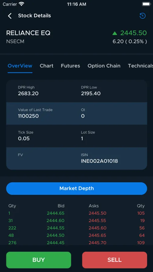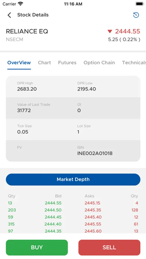 • Buy Sell directly from Option Chain.