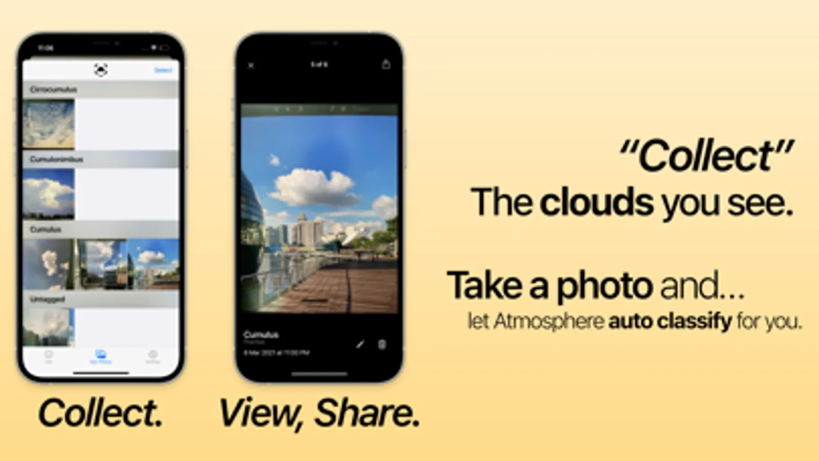 Atmosphere is created by me, Vincent Neo, an individual developer. I believe that being curious about nature is amazing, and that this app would be able to tell individuals what cloud they are looking at, in an easy to use manner.