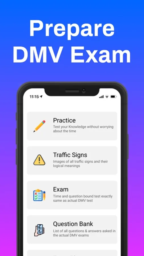 This app is designed for DMV preparation from anywhere. All the questions are based on DMV manual.