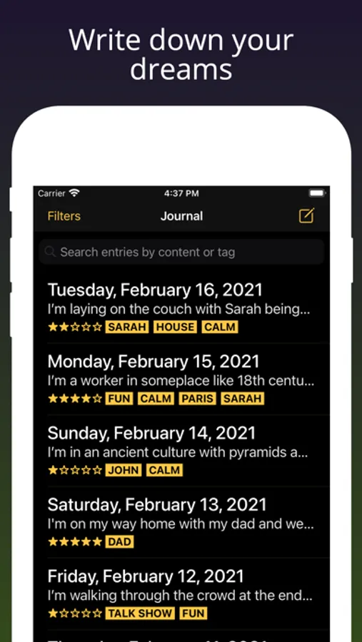 After you wake up in the morning, the first thing you should do is write down your dreams. Thanks to a lightweight and easy-to-use text editor, Everdream is the best way to do it. Rate your lucidity and attach tags to quickly find your dream signs.