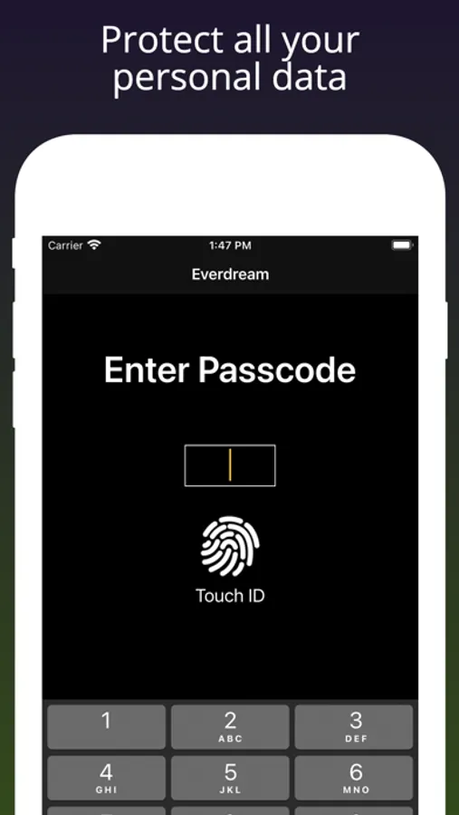 And because your dreams are your most intimate stories, you can set a passcode to protect your data. If you have a supported device, you can use your fingerprint (Touch ID) or use facial recognition (Face ID) to unlock Everdream.