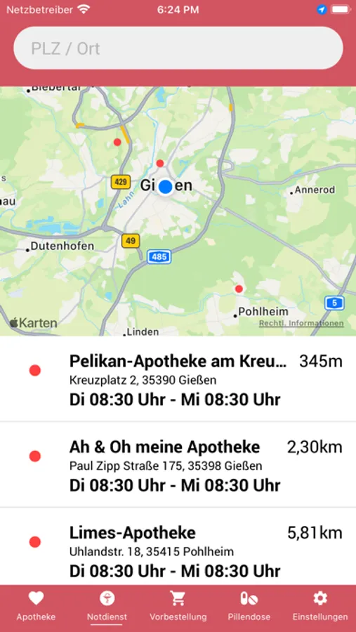 Wer hat heute Nacht Notdienst? Wir zeigen es Ihnen in unserer App. Mit Infos zur Anfahrt und Kontaktdaten der Notdienstapotheke.