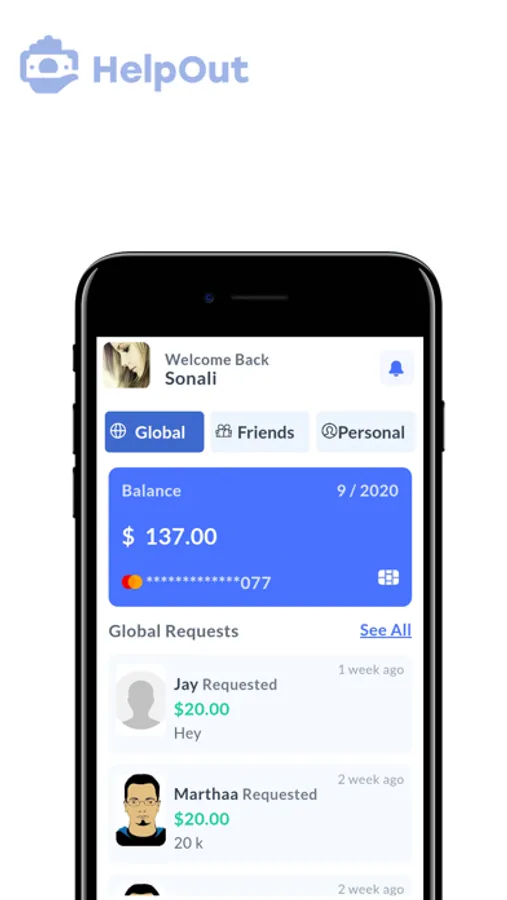 Helpout allows users to create their own budget and goals designed with the idea of friends helping each other out. Whether it is for personal benefits e.g., celebrating graduation, purchasing gift, buying a car, buying a house, going on family vacation, paying bills etc. or for helping friends and others in need due to unexpected and life changing circumstances e.g., death, illness, pandemic,accident, job lost etc., a helping hand is never far away.