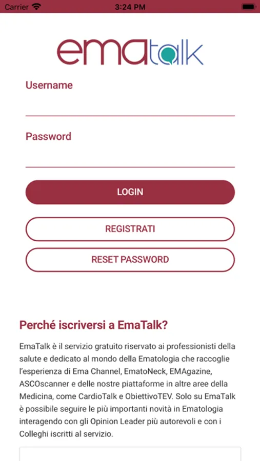EmaTalk è il servizio gratuito riservato ai professionisti della salute e dedicato al mondo della Ematologia che raccoglie l’esperienza di CnC GROUP di formazione e informazione in Medicina e delle piattaforme in altre aree della Medicina, come CardioTalk, ObiettivoTEV, OncoTalk, NeuroTalk. Solo con EmaTalk è possibile seguire le più importanti novità in Ematologia interagendo con gli Opinion Leader più autorevoli e con i Colleghi iscritti al servizio.