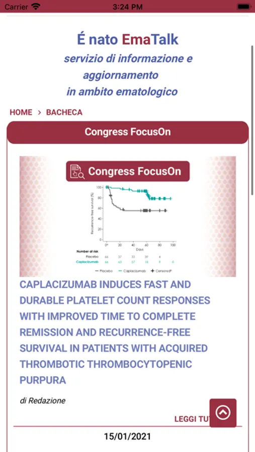 Le instant news di EmaTalk uniscono l'immediatezza di una digital chat all'informazione di alto profilo scientifico: segui, commenta, fai domande e condividi in tempo reale.