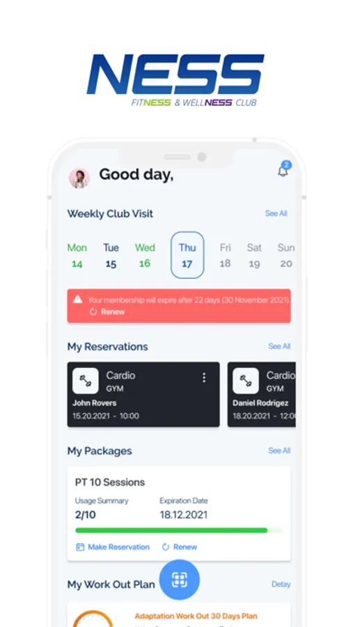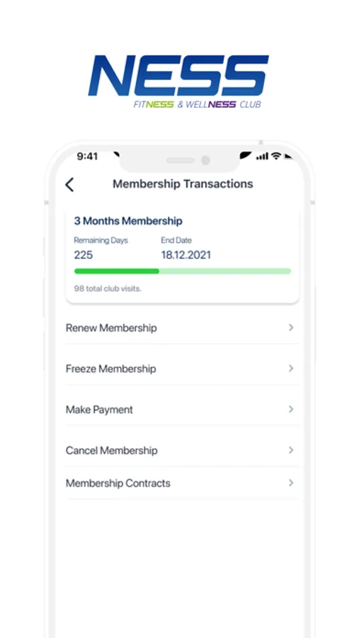 Ness Fitenss üyeliğinizi yönetmek için kullanılan bir IOS uygulamasıdır. Müsteri Programları, Ölçümleri, Rezervasyon Alma, Hizmet Satın Alma, Stüdyo Ders İşlemlerini gerçekleştirebilen Senkron Yazılım tarafından üretilmiş bir IOS uygulamasıdır.