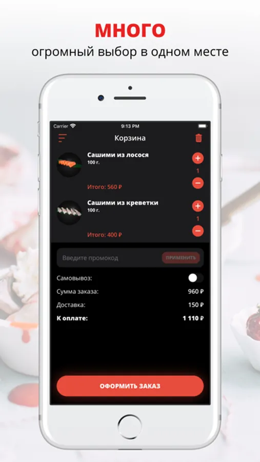 Разнообразное меню! У нас работают лучшие повара, а курьеры приятно порадуют вежливостью и быстрой доставкой.