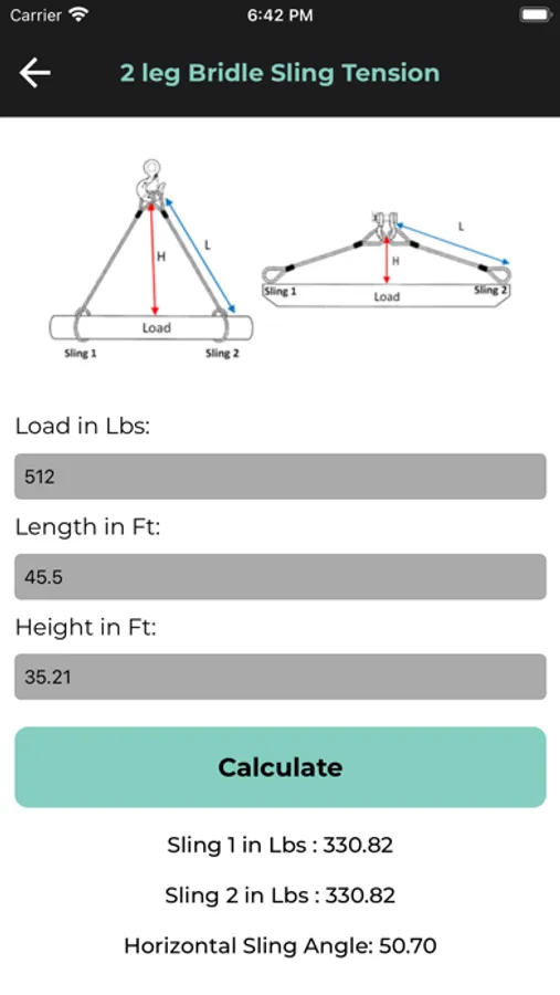 Sling Tension Calculator has been designed to assist you in selecting slings with enough load carrying capacity for your lifting applications. It is your responsibility to assure that the slings you use are appropriate for your application.