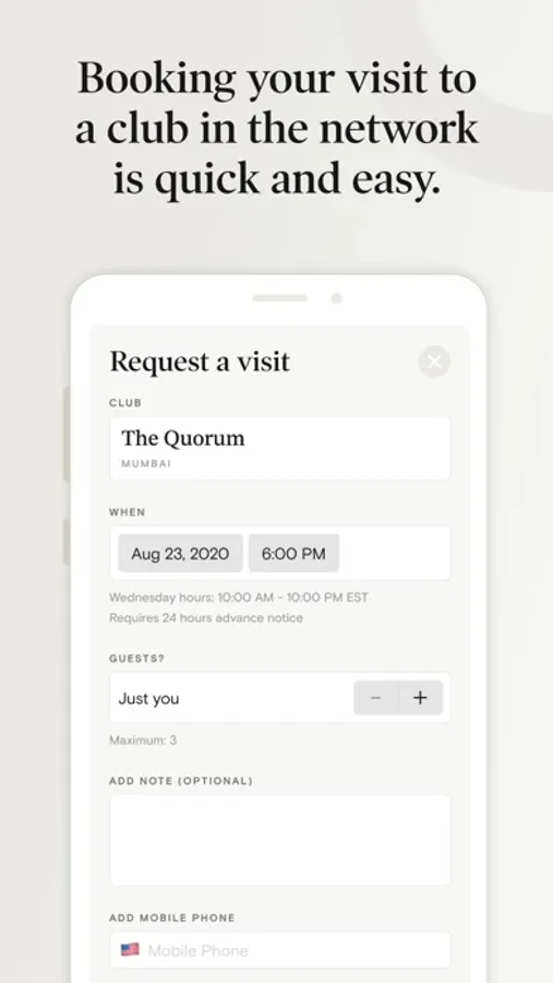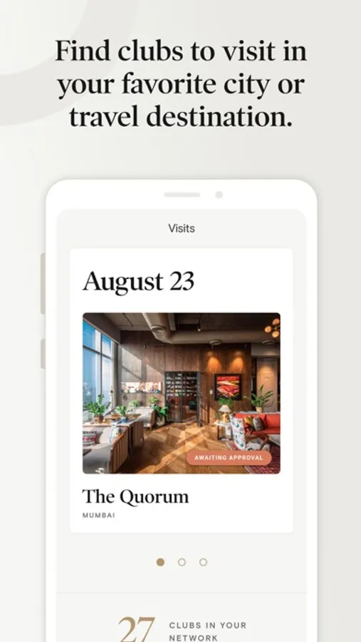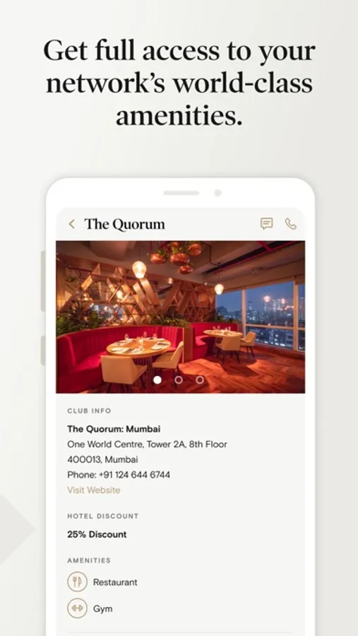 - Chat with club hosts and book tables for meals, drinks at the bar, spaces for work, and access to gyms