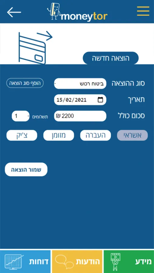 התוכנית של moneytor מסייעת לכם ללמוד לשלוט בתקציב המשפחתי, כדי שהוא לא ימשיך לשלוט בכם.