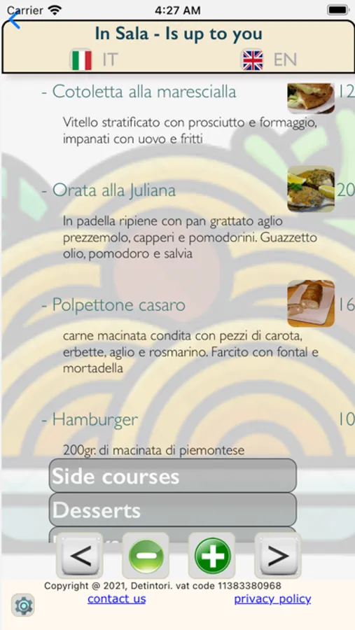 This simple app helps restaurants to manage orders, locally or in remote. The waiter (or even the customer self) clicks on the courses, filling the order, then sends it. Restaurant side there's a backend where to configure the menus, collect orders, manage them, and reading customer's comments.