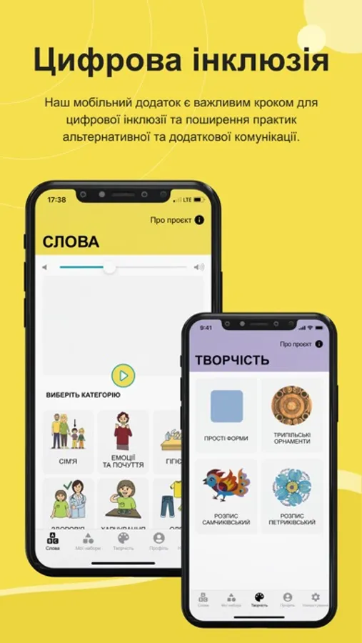 Digital Inclusion є першим у світі україномовним мобільним застосунком для спілкування, соціалізації і розвитку у цифровому світі. Ця програма є результатом багаторічної національної програми соціального партнерства для цифрової інклюзії та публічного діалогу, який розпочався у 2020 році. Програму апробовано у закладах дошкільної, шкільної, позашкільної та вищої освіти, медичних закладах, бібліотеках, громадських організаціях за участі користувачів, для яких створено програму Digital Inclusion, експертів, освітян, батьків, психологів, логопедів, митців, представників державних органів та місцевих громад у різних областях України.