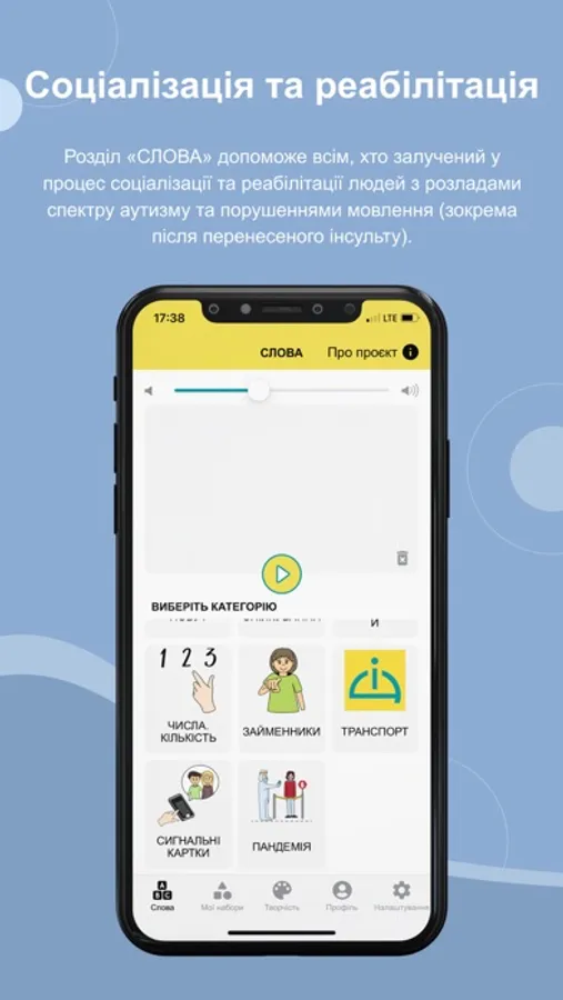 Соціальна адаптація та інтеграція людей із розладами мовлення або комунікації, коли мовлення тимчасово ускладнено або неможливо.