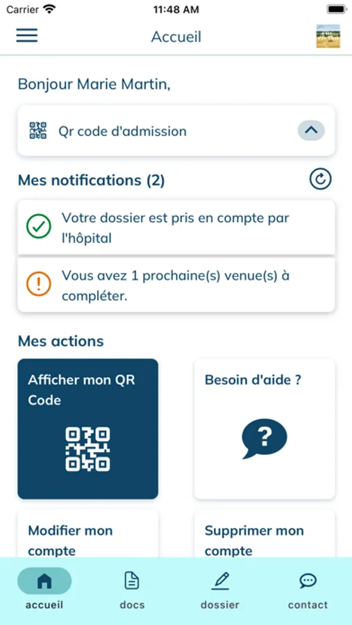 Cette application permet à un patient de renseigner ses informations administratives, de transmettre ses justificatifs, de payer en ligne, de demander un rendez-vous, d'obtenir un bulletin de situation ou encore d'échanger avec l'établissement de santé (Liste de services non exhaustive). D’une manière générale, cela permet au patient de préparer sa venue, de diminuer son temps d’attente pour son admission lors de sa venue à l’Hôpital.