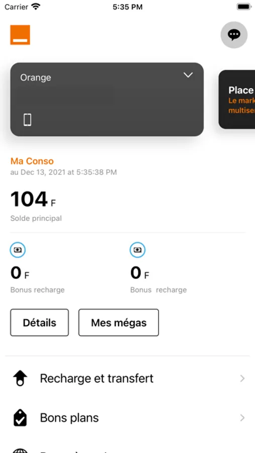 - Recharger votre compte ou celui d'un ami avec Orange Money ou une carte de recharge, ou en transférant du crédit