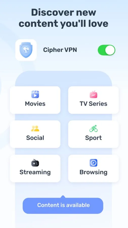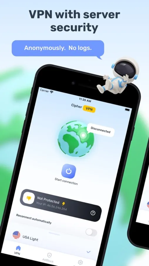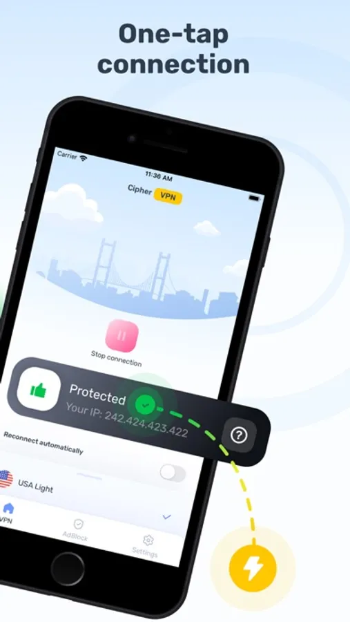 Ensure your online anonymity using the CipherVPN app. With our app, you can be sure that your private data is secure. Enjoy private web-browsing in one tap!