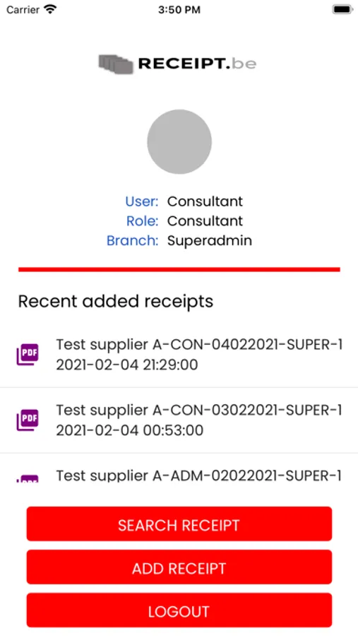 The app for the software platform Receipt. Where companies can upload and manage their receipt notes easily